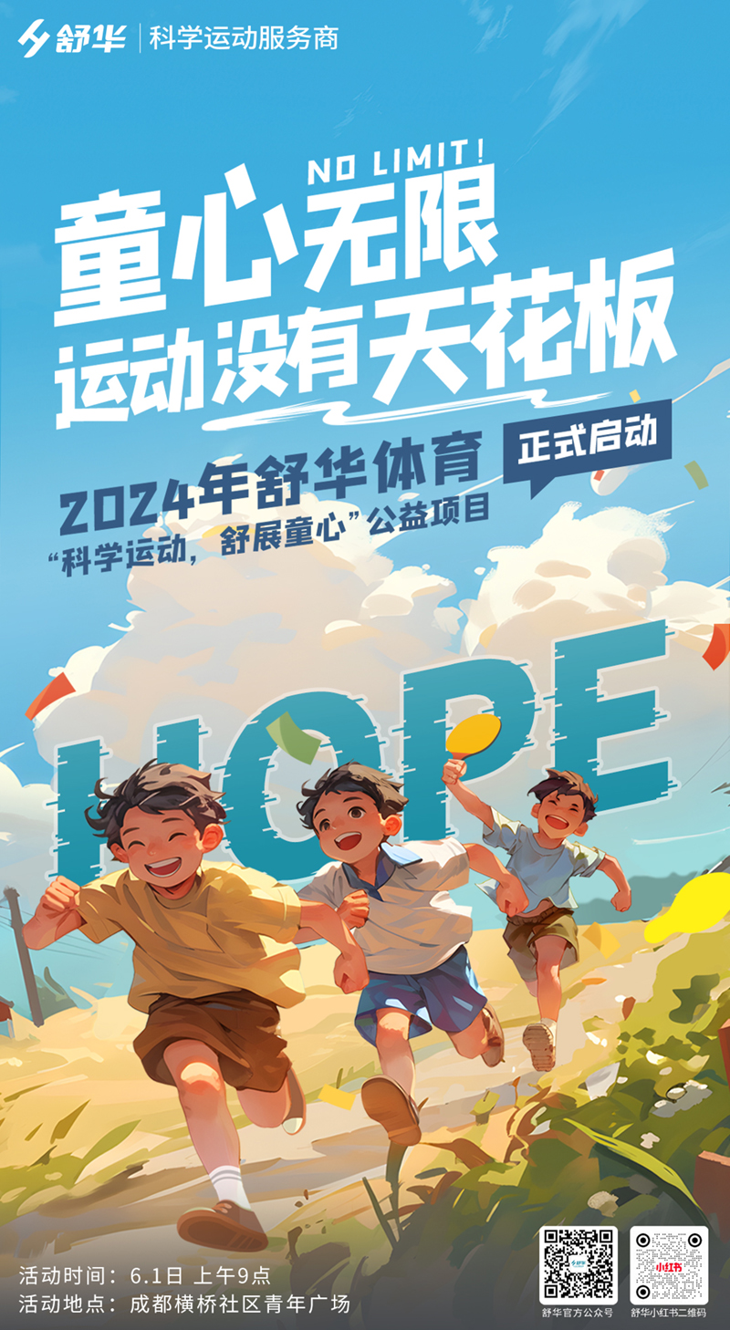 在六一儿童节这个充满童真和欢笑的日子里,由舒华体育联合恩派公益举办的科学运动,舒展童心公益项目启动仪式在成都隆重举行,标志着舒华体育旨在通过运动服务捐赠,以促进儿童身心发展的年度公益行动正式拉开帷幕。该项目计划在年内覆盖多个省市100个社区及学校,首批赠的社区和学校都是经过舒华体育和恩派公益团队实地走访、严格筛选后确定的,确保每一份资源都能得到充分利用,真正惠及孩子们。