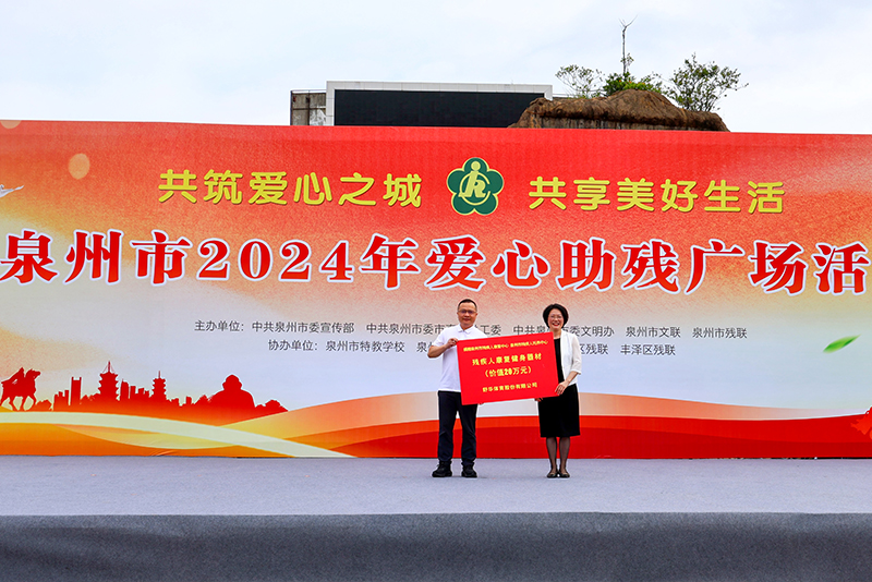 5月19日,由中共泉州市委宣传部、泉州市残联等单位主办的“共筑爱心之城  共享美好生活”泉州市2024年爱心助残广场活动在泉州侨乡体育馆举行。活动现场,舒华体育向泉州市残疾人康复中心和托养中心捐赠价值超20万的康复健身器材,用于帮助残疾人士进行科学运动康复。